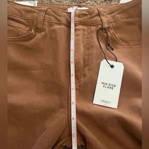 Elevate your style with these chic new Forever 21 mid-rise flare stretchy pants. The rich chestnut brown color adds a touch of western boho flare.
