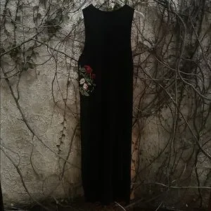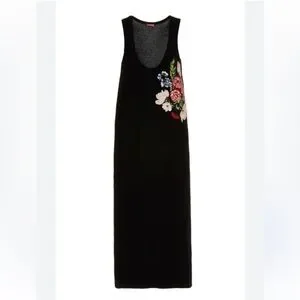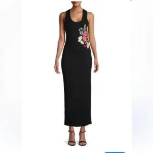Chic black maxi dress with vibrant floral embroidery. Ideal for stylish outings.
