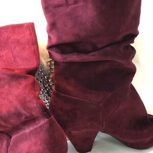 Step out in style with these elegant burgundy suede boots. Perfect for any occasion, these boots offer both comfort and sophistication. * Low heel • Good condition• fairly new