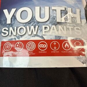 Brand new kids Gerry snow pants. Fleece lined, gator cuff on the bottom, stretchable, fleece lined, water and wind resistant. Size 10/12