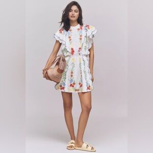 Farm Rio x Anthropologie Embroidered Ruffle mini Dress