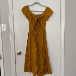 Chic mustard yellow skirt with tie detail. Perfect for versatile styling.