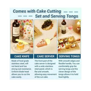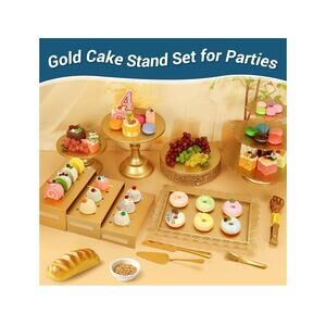 Audab Gold Metal Dessert Stand Set Cake Cupcake Tower Tray Riser Tongs for We...