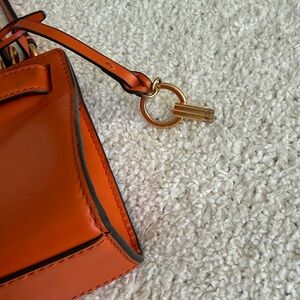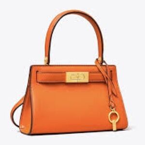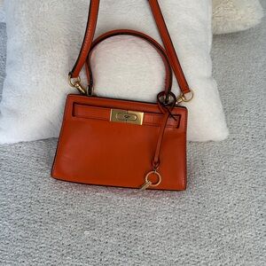 Tory Burch Lee Radziwill Petite Bag Orange Italian Leather Gold Hardware Handle