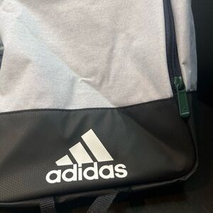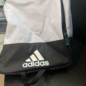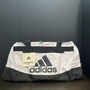 Stylish adidas duffel bag. Features bold logo. Spacious with multiple compartments. Durable straps for easy carrying.
