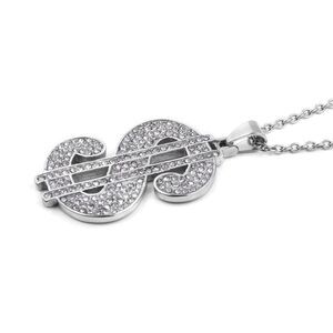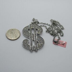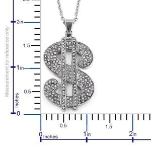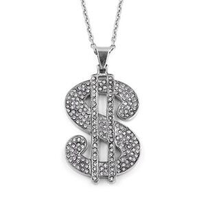 Simulated Diamond Money Sign Pendant Necklace 24 Inch in Stainless Steel
