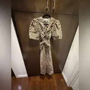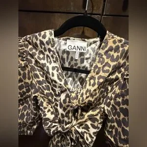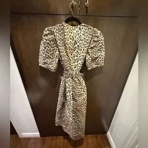 GANNI Leopard Printed Cotton Tie Strap Midi Dress! Worn only one time. In pristine condition.