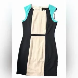This stylish colorblock dress features a chic combination of black, cream, and blue. Perfect for any occasion, especially for work, its sleeveless design offers a modern and elegant look. Fully lined, stretchy and comfortable. Don’t miss out on this opportunity. Buy it today!!