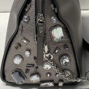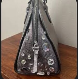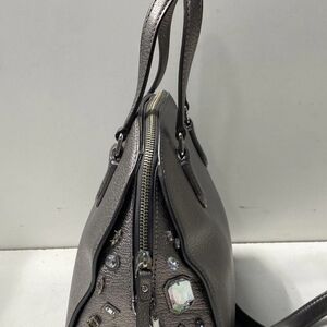 The handbag in the image is the Kate Spade New York Laurel Way Reiley Satchel in a gunmetal color, embellished with rhinestones.