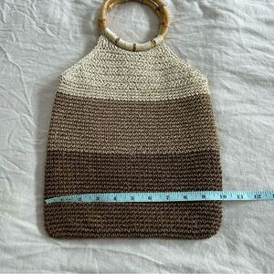Source Unknown Brown and Cream Tote with Bamboo Handle