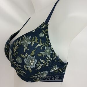 LUCKY Full Coverage Dark Romantic Floral Blue Feminine 36C Underwire Bra (#699)