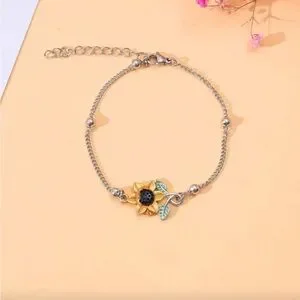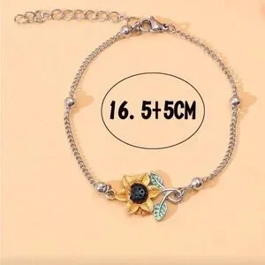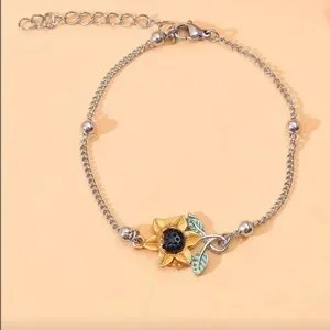 Elegant sunflower bracelet in silver. Perfect for adding a touch of nature-inspired beauty to any outfit.