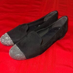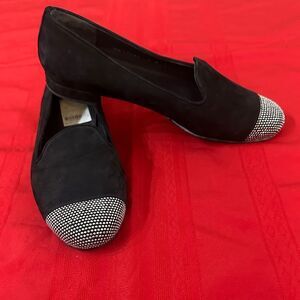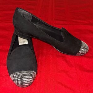 Stuart Weitzman Elegant Black Loafers with Silver Accents Size 8