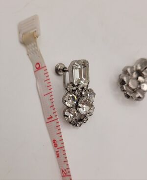 These Vintage Art Deco Emerald Cut Rhinestone Earrings are a stunning piece of mid-century modern jewelry. The clip-on closure makes them easy to wear for those without pierced ears, and the emerald cut rhinestones give them a glamorous and elegant look. The Art Deco style and vintage charm make these earrings a unique and eye-catching addition to any jewelry collection, perfect for adding a touch of vintage flair to any outfit.