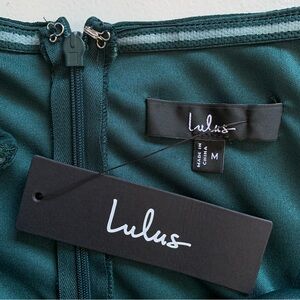 Lulus Medium Demure Aura Emerald Tiered Balloon Sleeve Maxi Dress NWT
