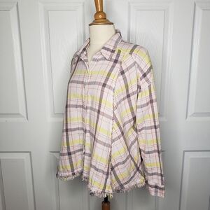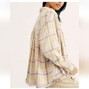 We The Free Seeking Starlight Plaid Double Gauze Button Down Shirt XS Free People Hi Low Hem Boho