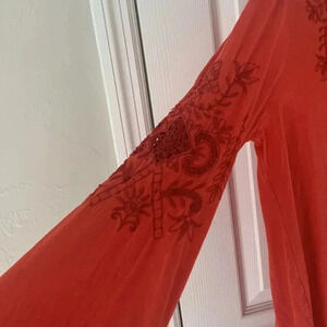 Lucky Brand Boho Embroidered Long Sleeved Top Size Small