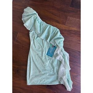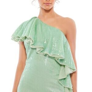 Mac Duggal NWT Sage Green Sequin One Shoulder Ruffle Cocktail Dress Size 4