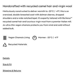 Content: 71% recycled camel hair, 21% virgin wool, 8% polyamide