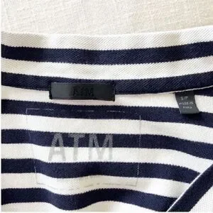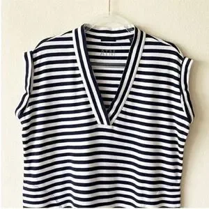 ATM Anthony Thomas Melillo V Neck Navy Striped Shift Dress. Size Small. Side pockets.