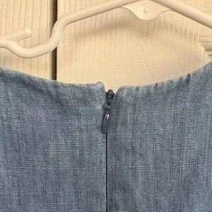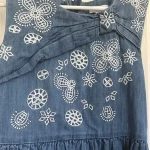 The Penny dress is made from lightweight denim and placed in a fit-and-flare silhouette that’s gathered at the waist. A bow element is added to the chest and broderie detailing features throughout.