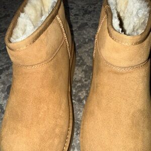 NWT never worn Cozy tan suede ankle boots with plush lining. Perfect for cold weather.