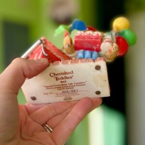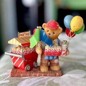 VTG Cherished Teddies Ray Popcorn Cart Textured 3D Rustic Cottagecore Accent