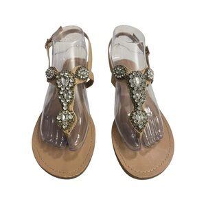 Max Studio Size 8.5 Jewel Rhinestone Crystal Embellished Flat Sandals Nude Gold