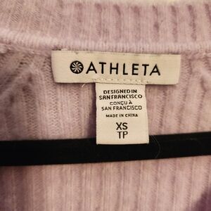 Athleta Layover V-neck sweater in Oxalis Violet or purple lilac merino wool blend Elegant V-neck sweater in soft purple. Perfect blend of comfort and style.
