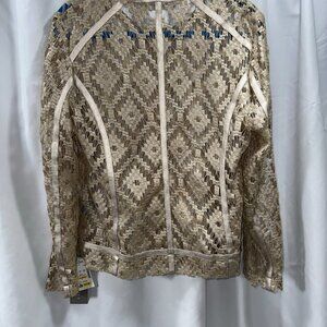 NWT Bagatelle Woman's Golden Metalli Lace Cut Out Zip Up Jacket 100% Poly