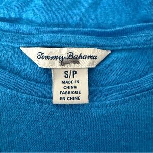 Tommy Bahama Top Womens Sz S Blue Embroidered Beach Scenic Short Sleeve Palm