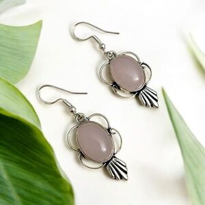 Pink Rose Quartz Silver Gemstone Earrings