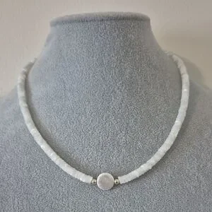 Natural Mother.of Pearl White Slices Of Pearl Rings & Pearl Coin Choker,Braclet