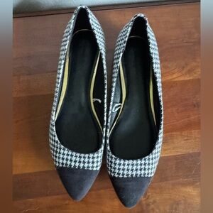 Banana Republic Black White Tweed Houndstooth Suede Pointed Toe Flats Womens 7.5