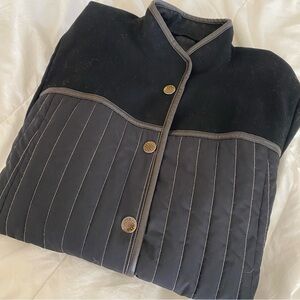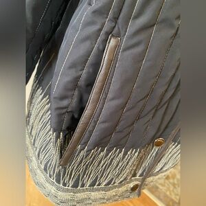 Crafted of beautiful quilted nylon, virgin wool and genuine leather leather trim, this piece will last a lifetime. Fits like a M/L, please see measurements.