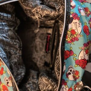 Make a bold statement with the Ed Hardy Women's Tote Bag featuring a striking skull and roses design. This blue and red bag is perfect for adding a touch of edgy style to any outfit.