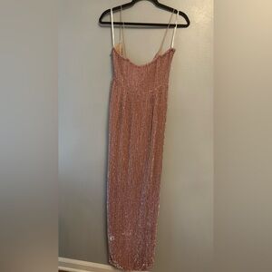 Retrofete Pink Maxi full sequined Dress small w/ leg slit NWOT (NYE)