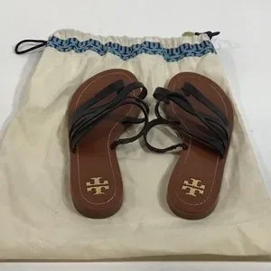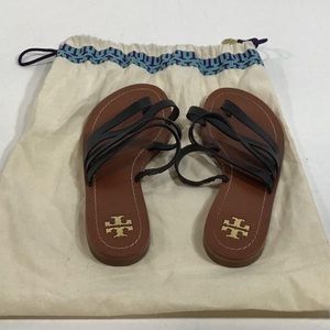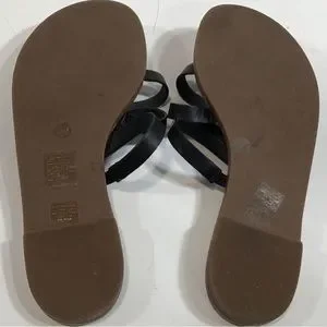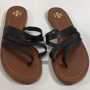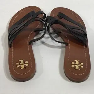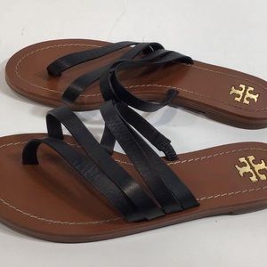 Gently used Tory Burch Black Leather Flat Strappy Women's Sandals Size 6.5M
