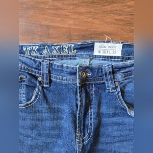 TK Axel Jeans Men 38x29 Slim Boot Cut Stretch 5 Pocket Denim Skater Embroidered
