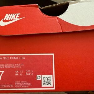 A pastel colorway that effortlessly transitions from the basketball court to the streets distinguishes the Nike Women's Dunk Low 'Indigo Haze.’ The low-top sneaker features a smooth clean white upper in all-leather complemented by a vibrant pink Swoosh and lilac overlays. The combination of a breathable nylon tongue and a low-cut padded collar ensures a comfortable and secure fit. The rubber midsole, finished in a vintage off-white hue, incorporates an interior foam wedge that provides optimal cushioning and support underfoot. The first photo is a model photo to show you what they’d look like on.