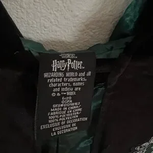 Step into your dark academia dreams with this official Wizarding World Slytherin robe. Made of luxe black velvet with a rich green interior lining, this piece is dramatic, cozy, and perfect for Halloween, cosplay, theme parks, or lounging like a wizard.