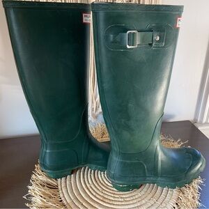 HUNTER Women's Original Matte Buckle Strap Rain Boots Dark Green Size 5