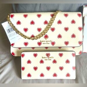 Kate Spade NWT Madison Heartfelt Geo Flap Crossbody & Matching Wallet Set