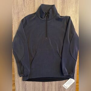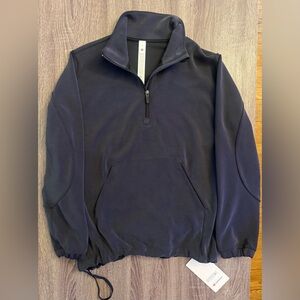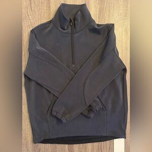 Stylish black Lululemon softstreme half zip crew neck sweater. Features a half-zip design. Comfortable and versatile.