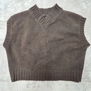 Florence Black Lambswool Knit Vest Brown XL Made in Scotland Unisex
