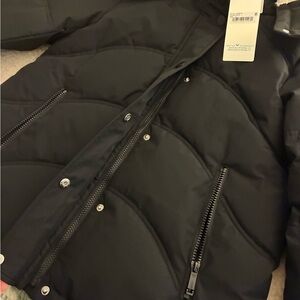 Brand new (with tags) Roxy Black Puffer Jacket with Sherpa Lined Hood. Zippered front with buttons. Two zippered side pockets.