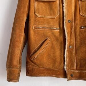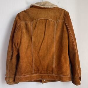 Vintage Tokens suede leather faux fur lined western rodeo rancher jacket sz L; has two pen marks on the back and has a bit of wear in the usual spots; SEE ALL PICS
