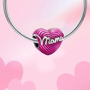Celebrate motherhood with this charming pink heart featuring 'Mama' in elegant silver. Perfect for adding a personal touch to your jewelry collection. 925 charm only