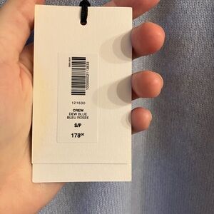 Aritzia cashmere sweater in dew blue. The sweater is new with tags and has never been worn. The sweater is photographing more purple than it looks in person - the colour as shown on the model is truer to life.