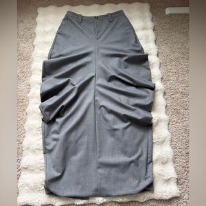 ✨Statement MICAS High Rise Gray Maxi Skirt With Avant-Garde ,Sculptural Draping